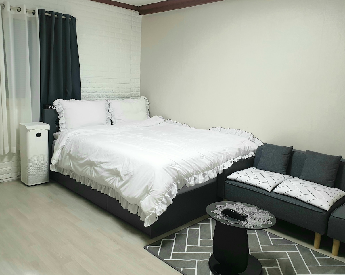 ● Klikk på vertens bilde for å se over 1000 anmeldelser om renhold. ● Ingen fellesområder (rom 1, kjøkken 1, bad 1) Sikkerhetsstrykejern med en ●ny dobbel sikkerhetslås ● gratis parkeringsmuligheter for over 200 kjøretøy (elbiler tilgjengelig) ● Nybygg med grundig oppvarming og lydisolering. Ekstra kostnad ●per person - 20 000 KRW - pute, håndkle, tannbørste, kroppshåndkle - Ingen ekstra seng. - For uautoriserte ekstra personer (refusjon X, utsjekking) ● Ingen barnesone, ingen kjæledyr.