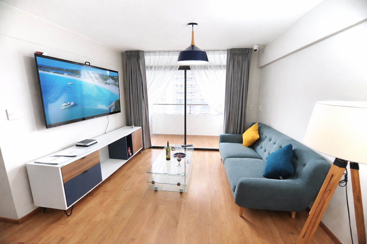Hei, alle sammen! Jeg heter Pedro, og dette er min splitter nye leilighet, spesielt designet for at du skal få et fint opphold! Leiligheten ligger ved siden av Larcomar, i det fantastiske Miraflores-distriktet, et av de vakreste nabolagene i Lima. Du vil være omgitt av stort sett alt: fantastiske restauranter, strender, parker, kafeer, kunstgallerier, kjøpesentre osv., samtidig som leiligheten ligger i en veldig fredelig og rolig gate!