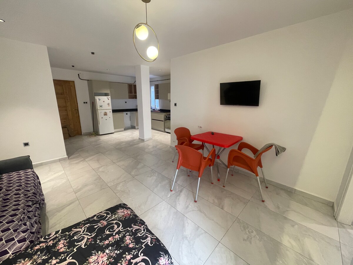 Velkommen til Jijel! Leiligheten vår er ny og har aircondition, perfekt for ferier eller jobbopphold. Fullt utstyrt og tilbyr kaldt og varmt vann døgnet rundt. Ligger 800 meter fra Corniche, 400 meter fra Zwai-stranden og 800 meter fra Al Naseem-stranden. I nærheten av restauranter, supermarked, apotek og busstasjoner. Inkluderer sikker parkering. Nyt en rolig gate og rolige netter!
