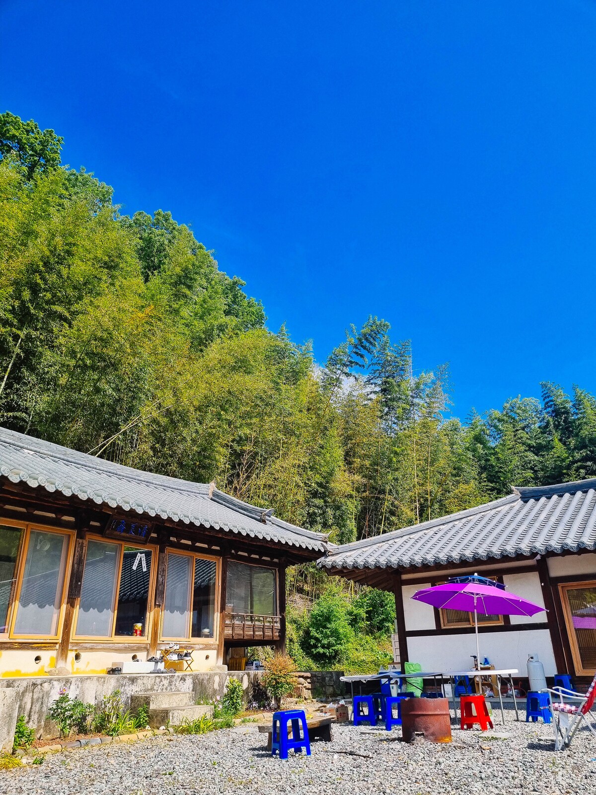 하동-산청 여행 시 꼭 숙박하고 싶은 지리산의 숨은 보석 별장형 펜션. 300평의 독립된 독채 펜션으로 전용면적 35평, 2층 목조주택입니다. 초록초록한 대나무밭과 파란하늘 아래 계곡 물소리를 들으며 하동에서의 새로운 추억을 만들어 보세요. 지리산 숲 속 거뭇거뭇한 밤 쏟아질 것 같은 별을보며, 나만의 여행을 만들어가는건 어떨까요? ☞☞ 매일 침구류 세탁 및 건조 / 소독/ 1회용 베개커버 ☞ 펜션 내 2개의 화장실 ☞ 고급 주방집기, 와인컵, 침구류, 수건, 샴퓨, 린스 등 생활용품 완벽 구비 ☞ 1층 25평 3개의 방(더블침대, ss황토침대,s침대 온돌라텍스2), 2층 10평 방2(침대1, 온돌라텍스1) ☞ 넓은앞마당에서 바베큐 가능 - 지리산가마참숯, 토치, 장갑 및 고급불판 제공, 숯불(3만/8인기준) ☞ 차로 10분 거리에 옥종농협 하나로마트 ☞오시는 길-단성IC 인근 원지마트, 하나로마트신안점 ☞ 주차공간(최대 7대), 와이파이 설치
