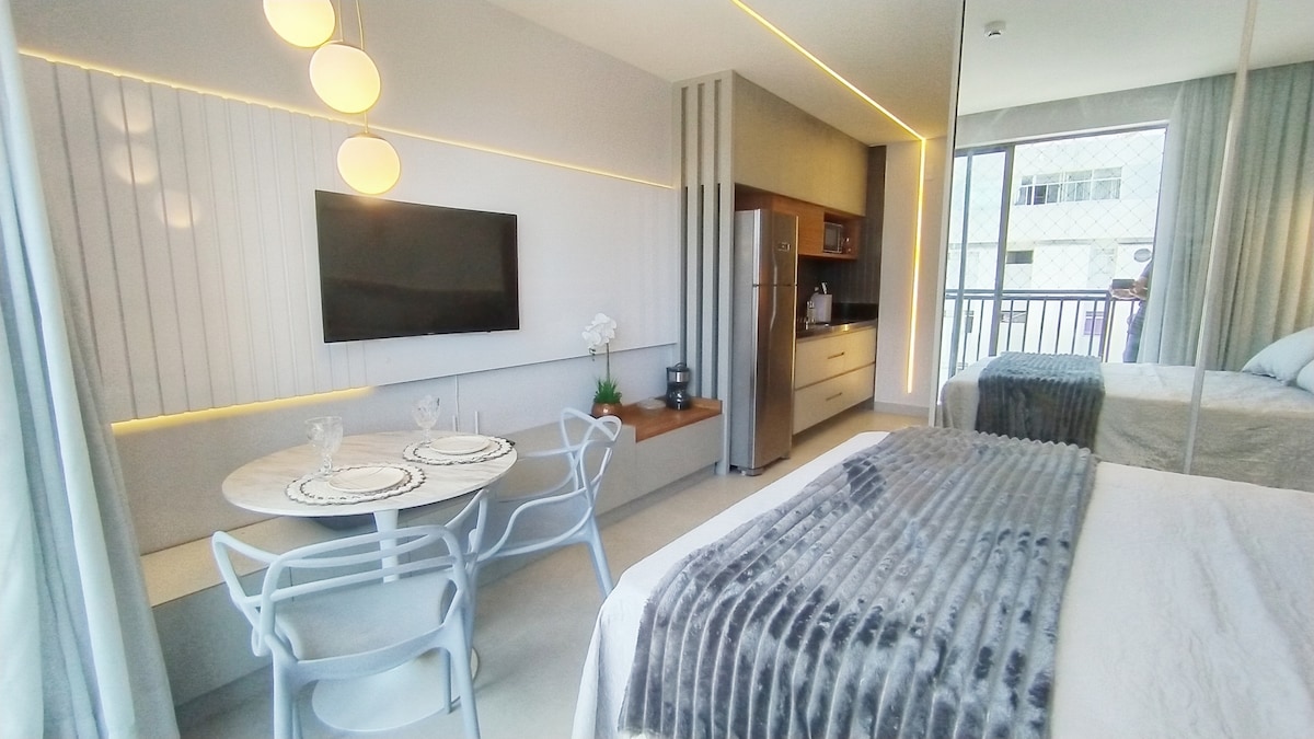 Ny og komfortabel studio/loft, fullt utstyrt, med wi-fi inkludert, noen få skritt fra alt du trenger, som barer, restauranter, banker, apotek, snackbarer, bakerier, og best av alt, det er mindre enn 50 meter fra sjøen! Den har også et differensiert fritidsområde, med et basseng på taket med privilegert utsikt, gourmetområde for grill, treningsstudio, barneområde, festlokal, spill, kino og overdekket *ROTASJONS*-parkering. **Første reservasjoner KUN gjennom plattformen!