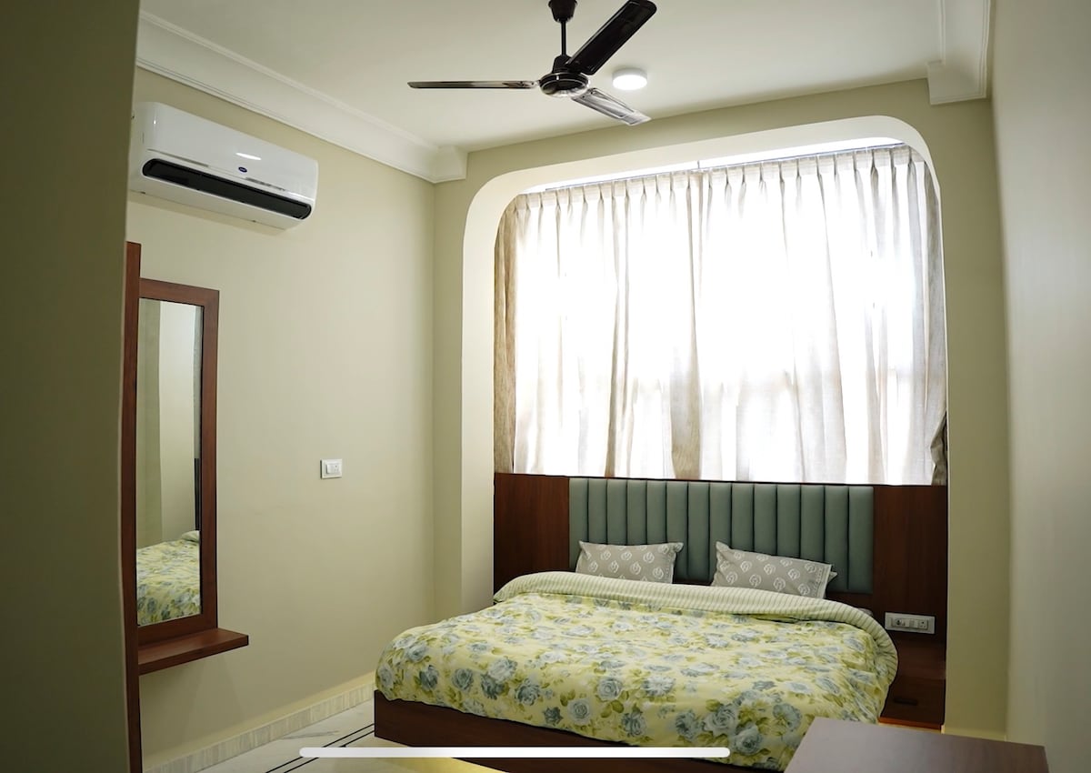 Nyt et fredelig opphold i vår private 3-roms leilighet i nærheten av AIIMS Jodhpur.Hele etasjen er helt atskilt med egen inngang og utgang, noe som gjør den ideell for familier.Du får 3 romslige soverom, 2 vestlige bad, et funksjonelt kjøkken, en koselig lobby, balkong, gallerirom og tilgang til terrasse.Parkering for opptil 2 biler kan ordnes.Perfekt for familier, lengre opphold og besøkende til AIIMS som søker komfort og privatliv.