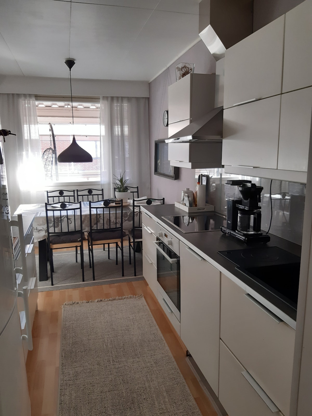 En koselig studioleilighet på 35,5 kvadratmeter i sentrum av Joensuu. Studioleiligheten ligger i andre etasje i et rolig leilighetsbygg. Det er en parkeringsplass og en heis. Sengetøy, håndklær, såpe og sjampo, hårføner, tørketrommel, kjøkkenutstyr, oppvaskmaskin, kjøleskap, mikrobølgeovn, stekeovn og komfyr, kaffemaskin, vannkoker, brødrister, en 43-tommers smart-TV og trådløst nettverk er inkludert. For småbarn er det en barneseng og leker.