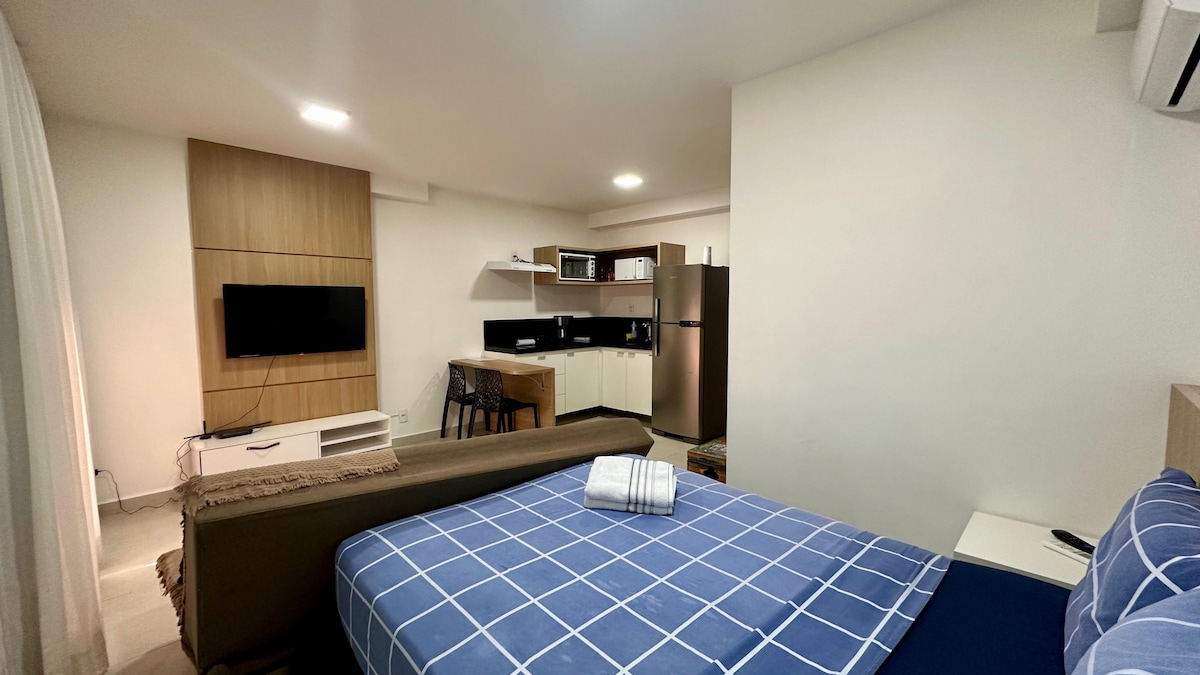 Studio i sentrum, fullt møblert og med hele strukturen til en leilighet. Hyggelig og praktisk. Den har TV (GLOBOPLAY og Amazon Prime), wi-fi, komplett kjøkken, Air Fryer, dobbeltseng D33, alle planlagte møbler, sovesofa, sengetøy og bad alltid rent og velduftende! Felles vaskerom i garasjen. I sentrum, nær Halfeld Park og Avenida Rio Branco. Enkel tilgang til supermarkeder, restauranter, bakerier, banker og handel generelt. Utmerket verdi for pengene!