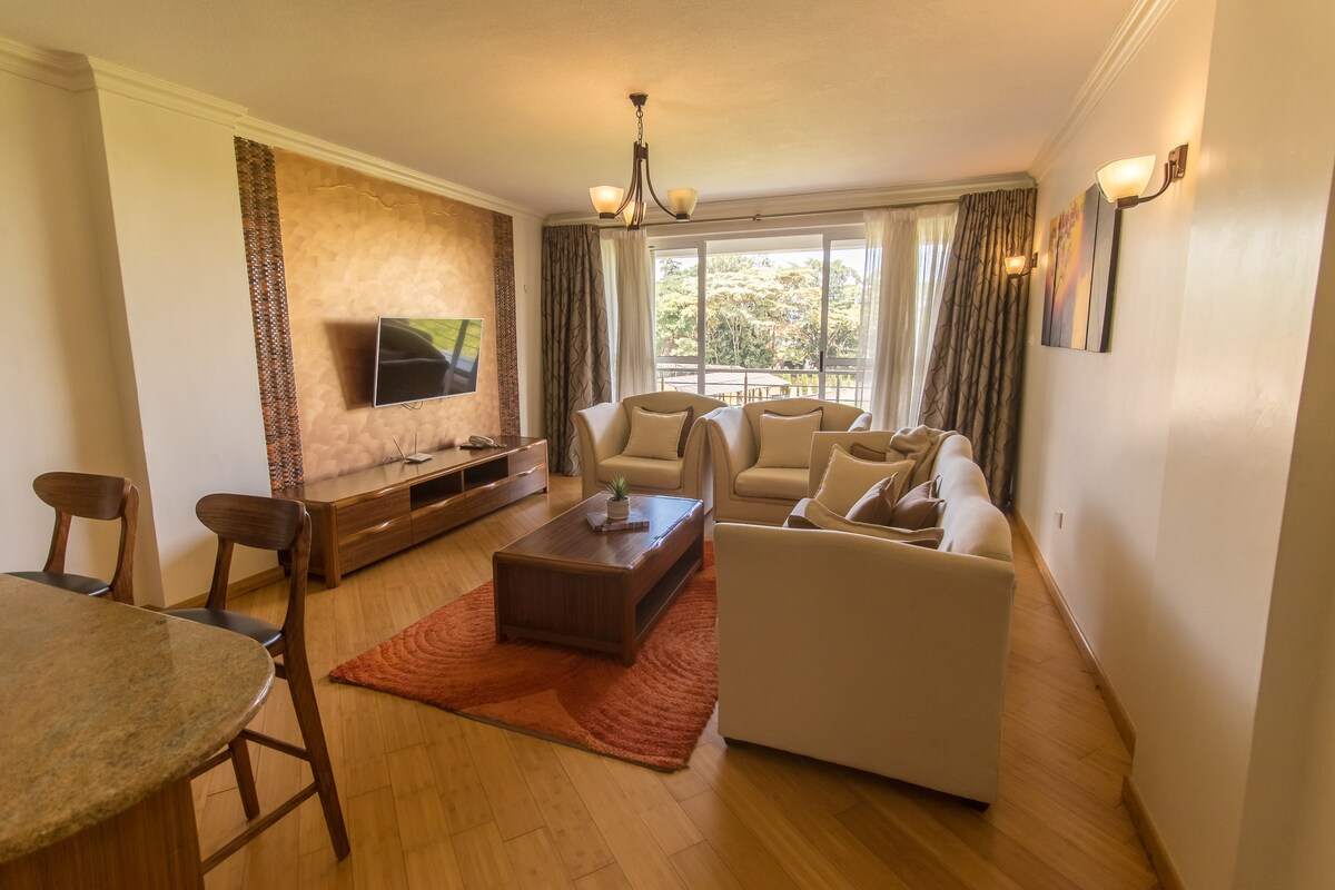 Hele denne stilige leiligheten er moderne, romslig og komfortabel, med ett soverom og eget bad, luksuriøs queen size-seng, veltalende spisestue, soverom og stue med Netflix-TV, balkong, kjøkken og vaskemaskinområde. Alle fasiliteter tilbys, inkludert ubegrenset raskt trådløst nettverk og forretningsfasiliteter. Plassert i en rolig, løvrik forstad, men også praktisk i nærheten av Westgate, Sarit og Lavington kjøpesentre, restauranter, forretningsknutepunkter, CBD og få meter fra Westlands uteliv.