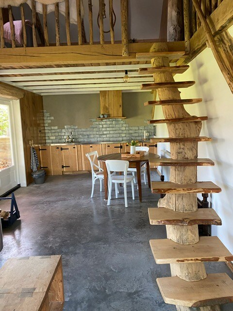 Vårt sjarmerende feriehus var opprinnelig en gammel låve som vi (Caroline og Jan) sammen, med kjærlighet og respekt for de gamle detaljene og materialene, har forvandlet til denne "Gulle Pracht". Via en privat innkjørsel med parkeringsplass kommer du til terrassen med den romslige hagen, en gressplen med omkringliggende høye trær, hvor det er herlig å være. Gjennom de to franske dørene kommer du inn i den lyse og koselige stuen med de gamle hvite bjelkene og et fullt utstyrt åpent kjøkken. Det er trådløst internett, TV og DVD tilgjengelig. Gjennom det fjernede taket i stuen faller det vakkert lys inn fra takvinduene, og du har utsikt over takkonstruksjonen med de gamle runde takbjelkene. Sengene ligger på toppen av de to loftene. Den komfortable dobbeltsengen er tilgjengelig via en åpen trapp. Den andre loftsrommet, hvor en tredje eller fjerde seng kan realiseres, er kun tilgjengelig for smidige gjester via en stige. For små barn er det ikke egnet på grunn av fallfare, men større barn synes det er spennende å sove der. Vær oppmerksom på at de to loftene deler samme store åpne rom. Under de gamle bjelkene er det herlig å sove stille, hvor bare lyden av raslende trær, fløytende fugler eller din herlige snorkende sengekamerat vil høres. Rommet er oppvarmet med sentralvarme, men vedovnen kan også varme opp hytta på en behagelig måte. Du får nok ved til å tenne en koselig brann. Gjennom en gammel stall-dør i stuen kommer du inn på badet med bjelketak og gulvvarme. Badet har en god dusj, dobbel vask og toalett. Med sine innleggsmosaikker og alle slags morsomme og gamle detaljer er dette rommet også en fryd for øyet. Det er to sykler tilgjengelig for flotte turer i det store området (Harlingen, Franeker Bolsward). Eventuelt kan vi sette deg av i Harlingen for en overfart til Terschelling. Du kan da la bilen stå på vår gård en stund. Vi bor selv på gården som ligger på samme eiendom. Vi er tilgjengelige for hjelp, informasjon og råd for morsomme turer i vårt vakre Friesland. Feriehuset ditt og vår gård er adskilt av hagen vår og den store gamle låven (med biljardbord), så vi har begge vår egen plass og privatliv. Kimswerd, som ligger langs elvestien, er en liten, rolig og vakker landsby hvor vår frisiske helt «de Grutte Pier» ble født og bodde. Han våker fortsatt over oss, i forsteinet form, i begynnelsen av gaten vår, ved siden av den gamle kirken, som absolutt er verdt å se. Du kan handle i Harlingen, supermarkedet ligger femten minutter unna med sykkel. Den gamle havnen i Harlingen ligger 10 km fra hytta vår. Kimswerd ligger rett over Afsluitdijk. Følg skiltene N31 Harlingen/Leeuwarden/Zurich og ta første avkjørsel Kimswerd, ta første til høyre på rundkjøringen, ta første til høyre på neste rundkjøring, fortsett rett frem over broen ved krysset og ta første gate til venstre (Jan Timmerstraat). I begynnelsen av denne gaten, ved siden av kirken, står statuen av Grutte Pier. Vi bor på gården bak kirken, Jan timmerstraat 6, første brede grussti til høyre. – For små barn er det ikke egnet å sove på loftet uten gjerde på grunn av fallfare. For store barn er det ganske gøy, loftet er tilgjengelig med en stige. Vær oppmerksom på at det er ett stort åpent rom uten privatliv.