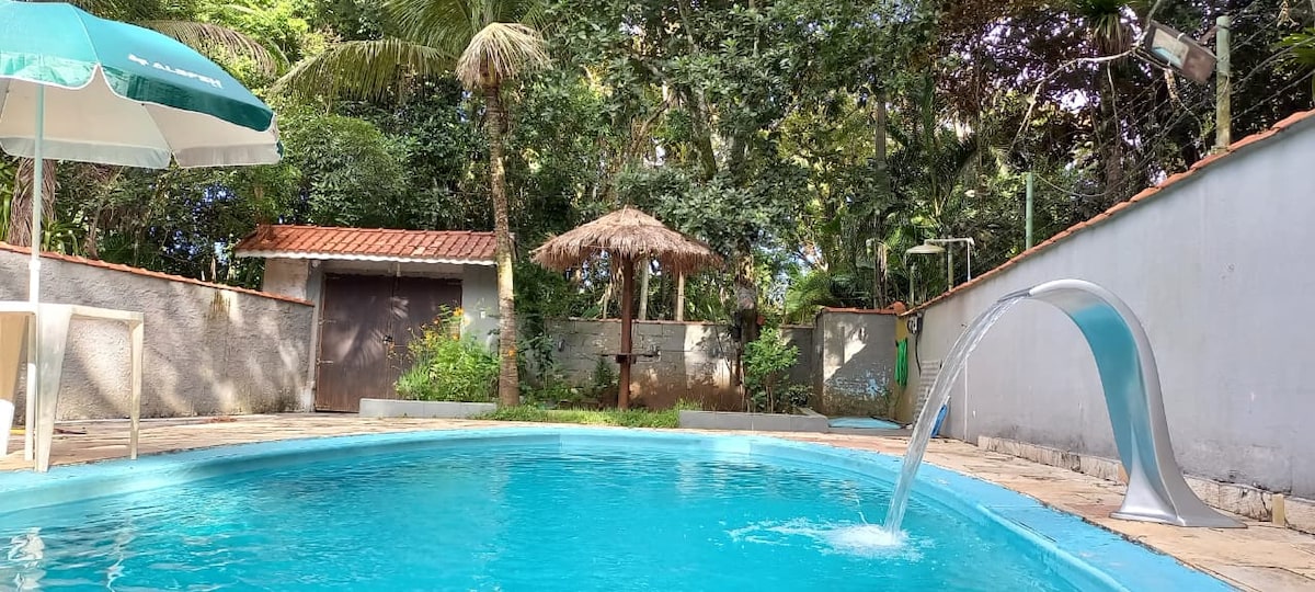 IMPORTANTE, informar o Nº EXATO de pessoas antes de fechar a hospedagem. Extras serão cobrados. 1 700ms de ÁREA CONSTRUÍDA ESTACIONAMENTO para 10 carros 8 QUARTOS 10 BANHEIROS PÉ NA AREIA LINDA PISCINA BAR CHURRASQUEIRA WI-FI SALA de TV Próximo a cachoeiras, trilhas, passeios de barco, há dez minutos do comércio central, farmácias, supermercados, restaurantes e locais históricos.