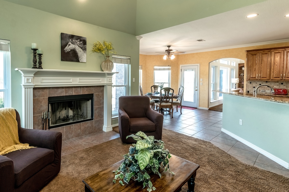 Slapp av med hele familien på dette fredelige stedet å bo. Velkommen til vårt sjarmerende tilfluktssted bare 30 minutter fra Dallas Fort Worth (DFW) lufthavn og Fort Worth sentrum, og ti minutter fra Texas Motor Speedway og Tanger Outlets – designet for komfort og bekvemmelighet. Dette splitter nye hjemmet med tre senger og to bad har komfortabelt plass til syv personer og har en vaskemaskin, tørketrommel, smart-TV, trådløst nettverk, Keurig med mye mer. Dette hjemmet er ideelt for familier/grupper som besøker Nord-Texas, og her kan du skape nye minner.