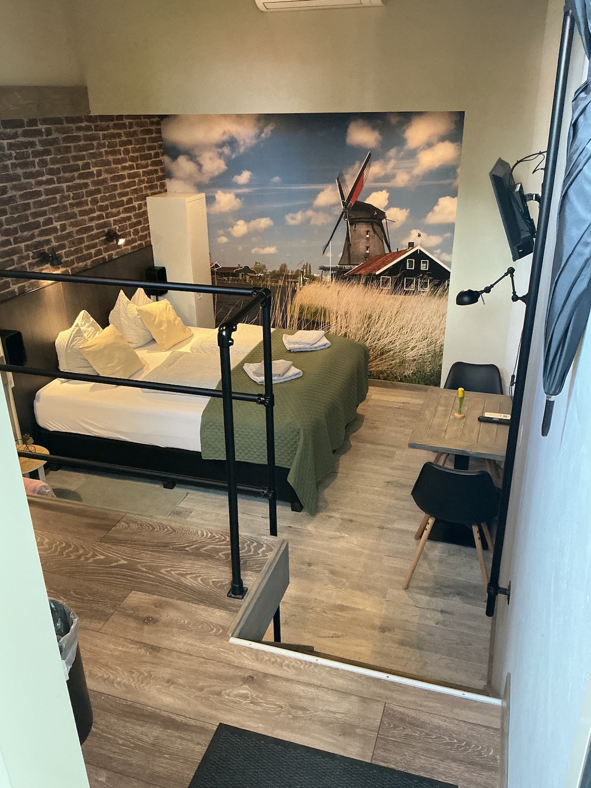 Logement Bilderdam ligger i den vakre sykkel- og turstien. Dette unike feriehuset, helt foret med stillas, er helt nymøblert og utstråler ro gjennom den landlige stilen. Overnattingsstedet er fullt møblert for å gjøre deg glad og stresset. Bilderdam er en idyllisk by som ligger på grensen til Nord- og Sør-Holland. Rett gjennom Bilderdam, den vakre elven Drecht renner. Det er det perfekte stedet å gå turer, sykle og seile.