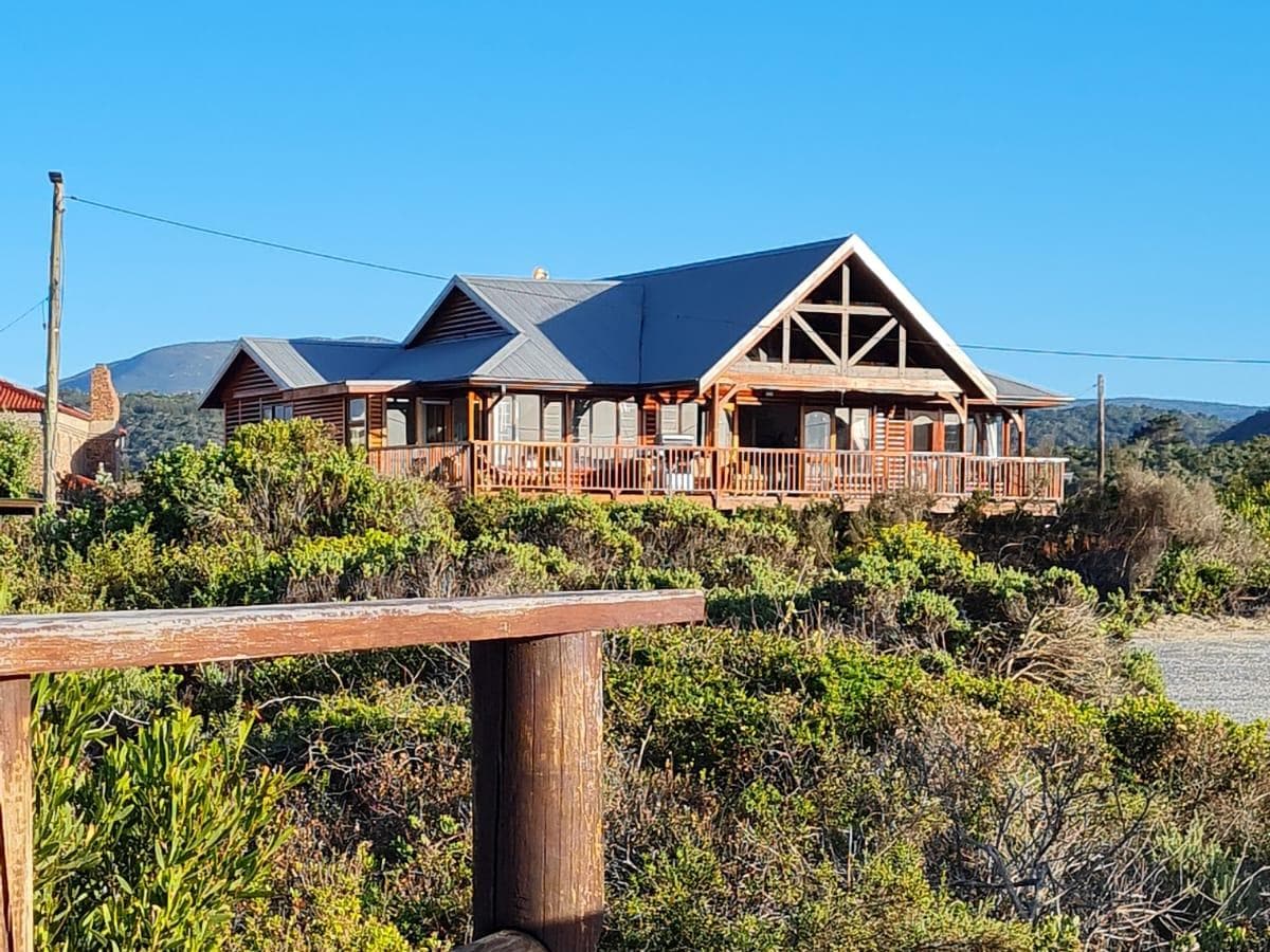 Reserve-strømforsyning. 4,4 m x 2,4 m oppvarmet basseng. Huset ligger på en dramatisk beliggenhet 60 meter over havet, med endeløs havutsikt. Sett i et 94 hektar stort privat , trygt reservat, turer og fotturer fra inngangsdøren, kom og opplev naturen i luksus. Hvaler/delfiner/dyreliv/ stjerner! 24 timers sikkerhet 15 minutter til George Mall, 20 km fra George lufthavn. Huset har 180 graders utsikt over havet, med frisk, ren luft og lyden av havet nedenfor.