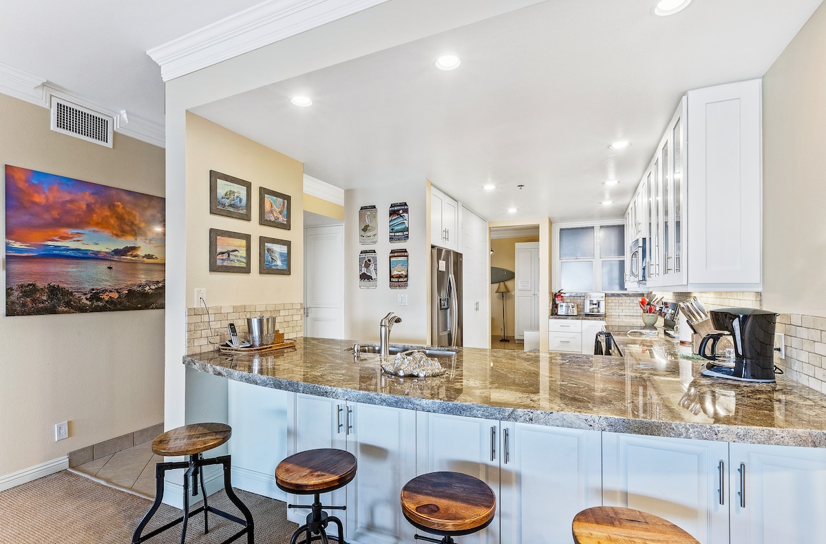 Velkommen til #334 på Kaanapali Shores, som ligger på den berømte Kaanapali Beach i vakre Westside of Maui. Leter du etter det ultimate stedet for en familieferie, en romantisk ferie eller bare en avslappende tid med venner? Du trenger ikke lete lenger enn Kaanapali Shores – det har alt du trenger! Bo i denne nyoppdaterte, sjarmerende studioleiligheten og skap uforglemmelige minner. Vi gleder oss til å ønske deg velkommen som vår gjest på denne utrolige Maui-ferien!