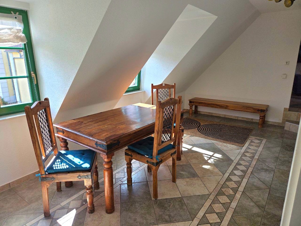 Den koselige leiligheten ligger i en nylig renovert, fredet bygning, som tilhører en liten gårdsplass. Det ble brukt naturlige byggematerialer og materialer, gamle bjelker og dører gir autentisitet. Togstasjonen og den historiske gamlebyen i Meißen ligger innen gangavstand. Elbe-sykkelveien går 150 m unna. Parkering er tilgjengelig i umiddelbar nærhet. Bydelen er rolig og virker veldig grønn på grunn av de mange trærne.