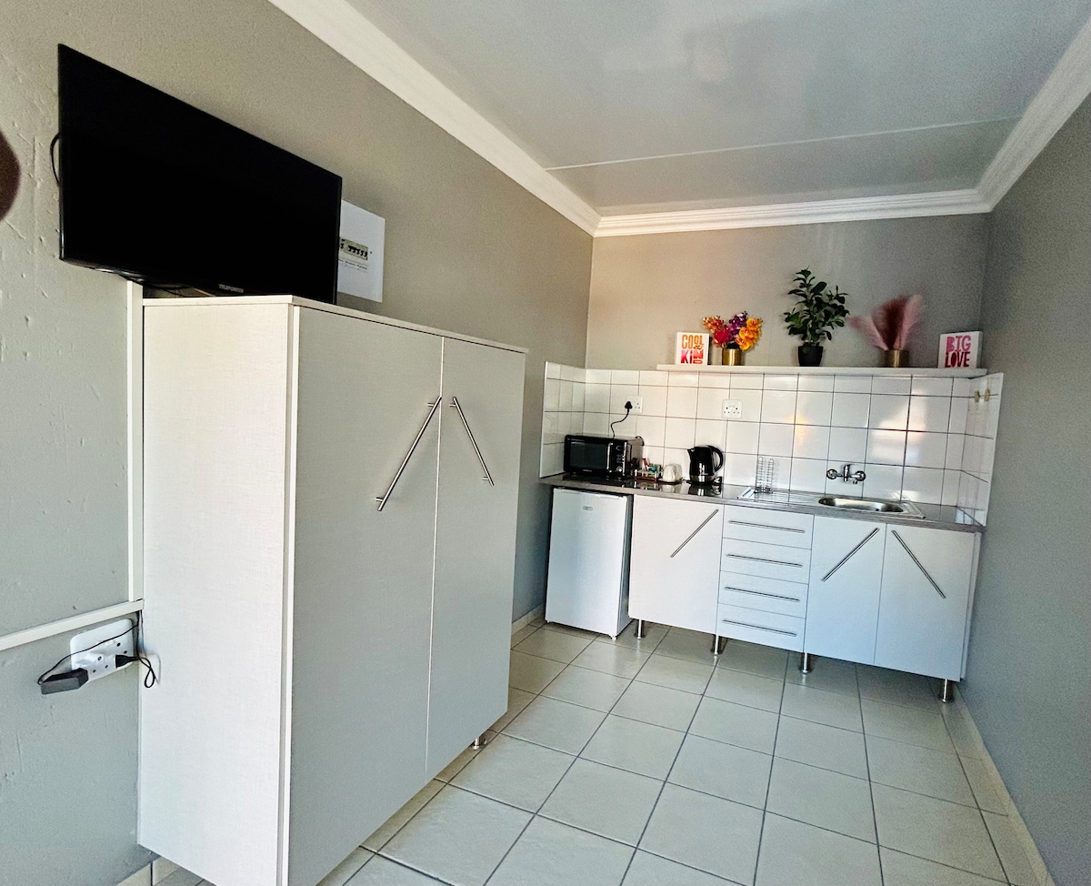 Vi bruker solenergi, og med den sentrale beliggenheten vår har du enkel tilgang til butikker, restauranter, Kalahari Country Club og Sishen Iron Ore Mine. Ettromsleilighet med åpen kjøkken- og stueløsning. To rolige uteområder som er ideelle for avslapning. Trygg og sikker parkering.