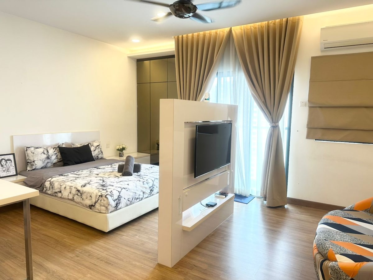📍Pertama Residency Velkommen til mitt nye Bnb - Moonrise City! Dette studioet er nylig satt opp med mye kjærlighet, kombinerer moderne innredning med moderne fasiliteter og en opplevelse alle kan nyte spesielt jacuzzi øyeblikk med din kjærlighet og 120" projektorskjerm m/Netflix. Dette unike stedet har sin egen stil, det tilbyr et koselig, rent, rolig og forfriskende oppholdsmiljø for par. Opplev den nye bnb-en! Se deg.