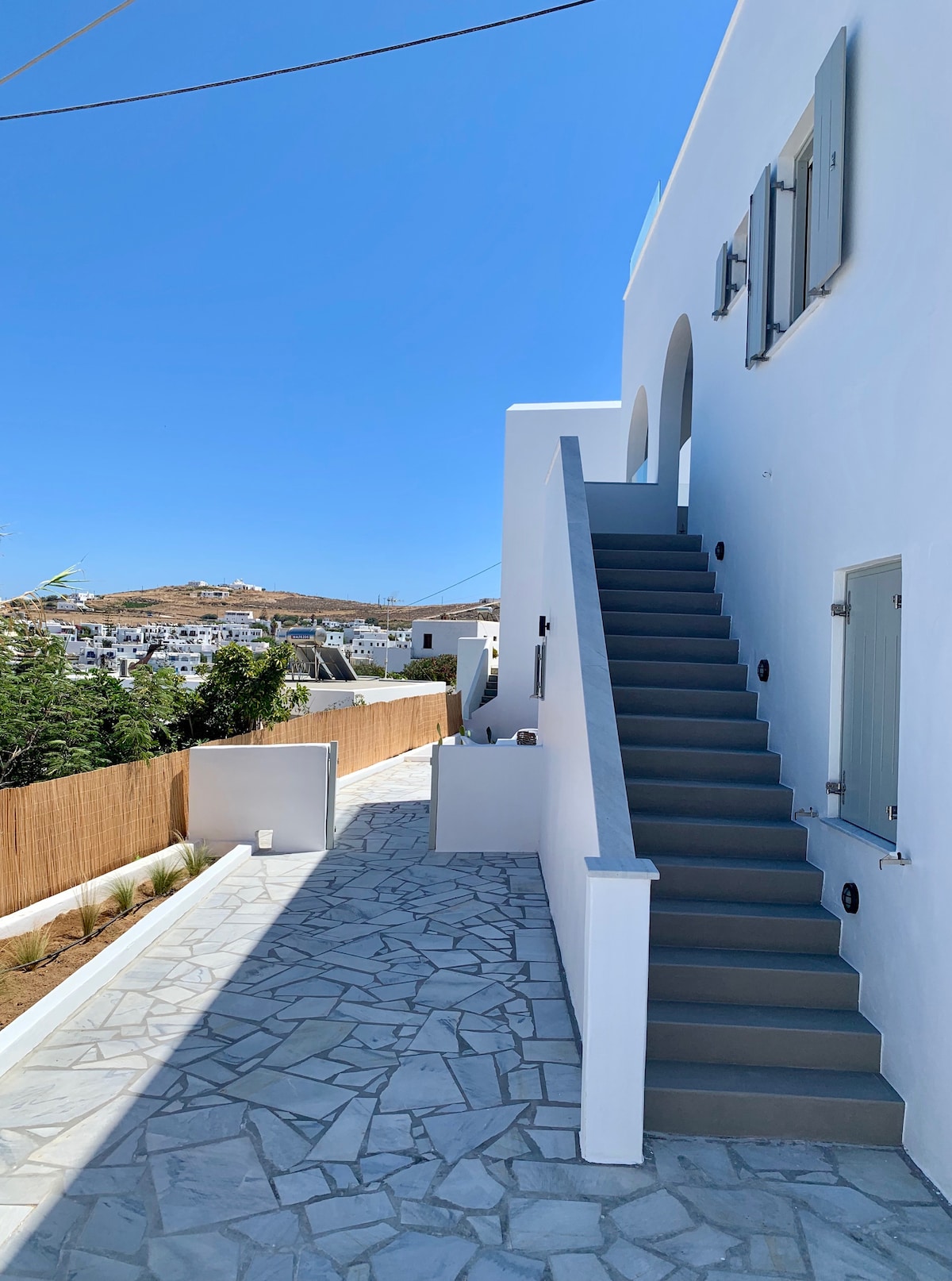 Armenistis-leiligheten ligger i Naoussa med en veldig fin utsikt over havet, bare noen meter unna ligger den fantastiske stranden Piperi. Naoussa hvor leiligheten ligger er en svært malerisk landsby med sin fantastiske havn og det venetianske slottet.Bare noen minutters spasertur fra leiligheten er du i sentrum av Naoussa hvor du kan nyte god mat,natteliv og shopping i butikkene i landsbyen.
