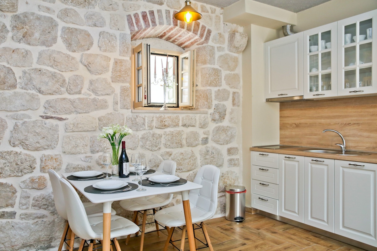 Elegant og sjarmerende middelalderhus i tre etasjer med bevart, antikk sjarm og moderne komfort med fullstendig privatliv. Dette koselige stedet i hjertet av gamlebyen i Kotor har en vakker utsikt fra den romslige, klassiske stuen med en dekorativ peis. To soverom med eget bad, fullt utstyrt kjøkken, spiseplass og klimaanlegg gjør oppholdet ditt så komfortabelt som mulig. Bortgjemt i en pittoresk gangvei, men likevel sentralt plassert. Noen få minutter fra busstasjonen, stranden og restauranter