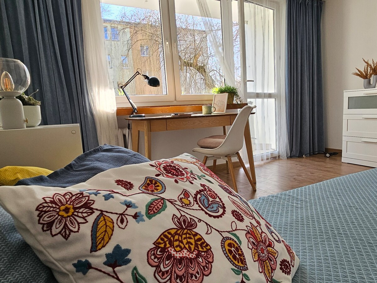 Sentralt plassert finner du ro og komfort. En luksuriøs leilighet med to soverom, stue, kjøkkenbad og en stor terrasse er utstyrt med alt du trenger for et kort og langt opphold. Overfor ligger Manufaktura sentrum med butikker, restauranter, kino, klatrevegg og treningsstudio. Old Town Park 800 meter. Gratis parkering i lukket boligområde. Et flott sted å bo for å utforske byen og et forretningsopphold.