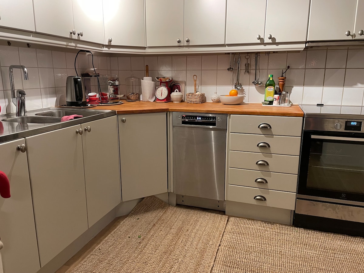 Herlig kjellerleilighet med alle bekvemmeligheter. Fullt utstyrt kjøkken med oppvaskmaskin, bad med dusj og vaskemaskin/tørketrommel. Soverom med to senger og romslig garderobe. I nærheten av historiske Kalmar, Kalmarsundsparken og slottet. Kort spasertur til sentrum med butikker og restauranter. -- Fin kjellerleilighet i familiehus. Soverommet har to enkeltsenger. Fullt utstyrt kjøkken og bad med dusj og vaskemaskin/tørketrommel. Gangavstand til Kalmar slott og sentrum med restauranter og butikker.