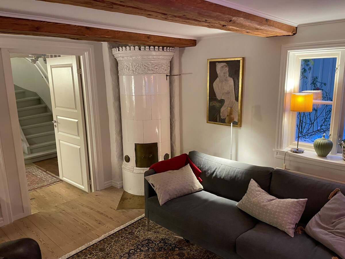 Velkommen til denne sjarmerende loftsleiligheten i hjertet av sentrale Kalmar, som ligger i krysset av Kaggensgatan/Sras langggatan. Bo i en historisk perle – et vakkert hus fra det 17. århundre hvor du kan nyte 100 kvm stilige rom. Leiligheten har tre rom og et kjøkken, perfekt for opptil seks personer. Slapp av i den private badstuen etter en dag fylt med opplevelser. Opplev Kalmar med stil og bekvemmelighet! Togstasjonen ligger 150 meter nær, og stranden i Kattrumpan ligger 450 meter i nærheten – bestill oppholdet ditt nå!