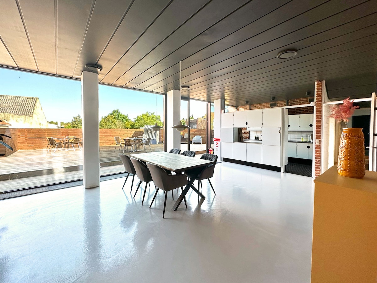 Nyt en stilig opplevelse i denne sentralt beliggende boligen. Denne ferieleiligheten er med sin unike beliggenhet midt i Stege by, sitt industrielle utseende og den enorme takterrassen noe helt unikt! Den store eiendommen midt på Storegade har tidligere vært en bank, men er nå ombygd med respekt for den opprinnelige stilen og inneholder en blanding av butikker, kontorer og ferieleiligheter. Leiligheten ligger i 1. etasje og har utsikt rett ut mot Storegade. Det er en egen parkeringsplass bak eiendommen.