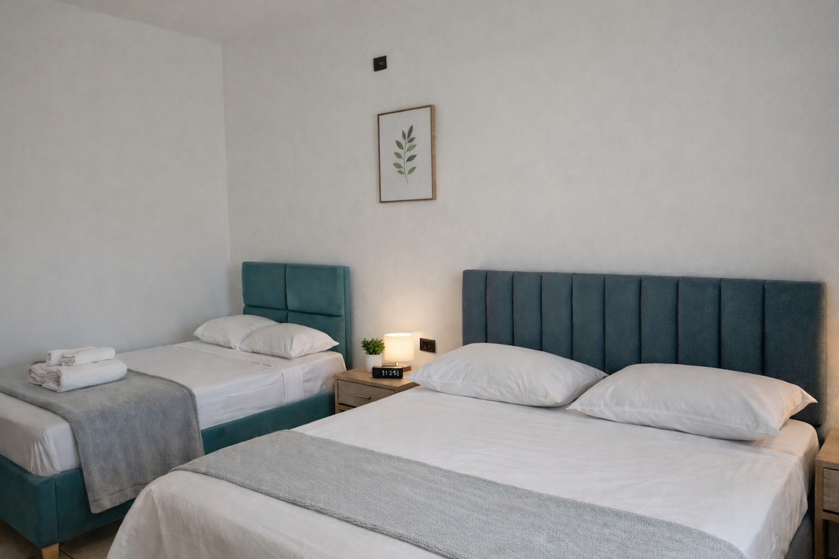 The apartment is located 10 minutes by car from Tirana International Airport in a quiet and private area, ideal for rest before or after flights. Although there is no direct public transport, taxis are available 24/7 and airport transfer can be arranged upon request. Perfect for transit travelers, early flights, or short stays near the airport