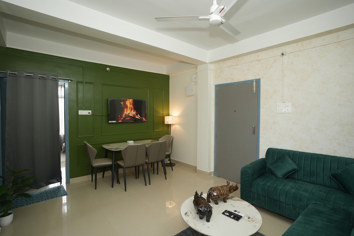 Velkommen til ditt romantiske tilfluktssted – et koselig 2BHK Nest Flykt til et fredelig fristed designet for par som søker komfort, kontakt og ro. Denne gjennomtenkte kuraterte 2BHK blander koselig estetikk med hjemmekoselig varme, hvor myk belysning, myke møbler og subtile romantiske detaljer setter stemningen fra det øyeblikket du går inn. Hvert soverom har en rolig utflukt med milde toner, rent sengetøy og omgivelsesbelysning som er perfekt for å slappe av.