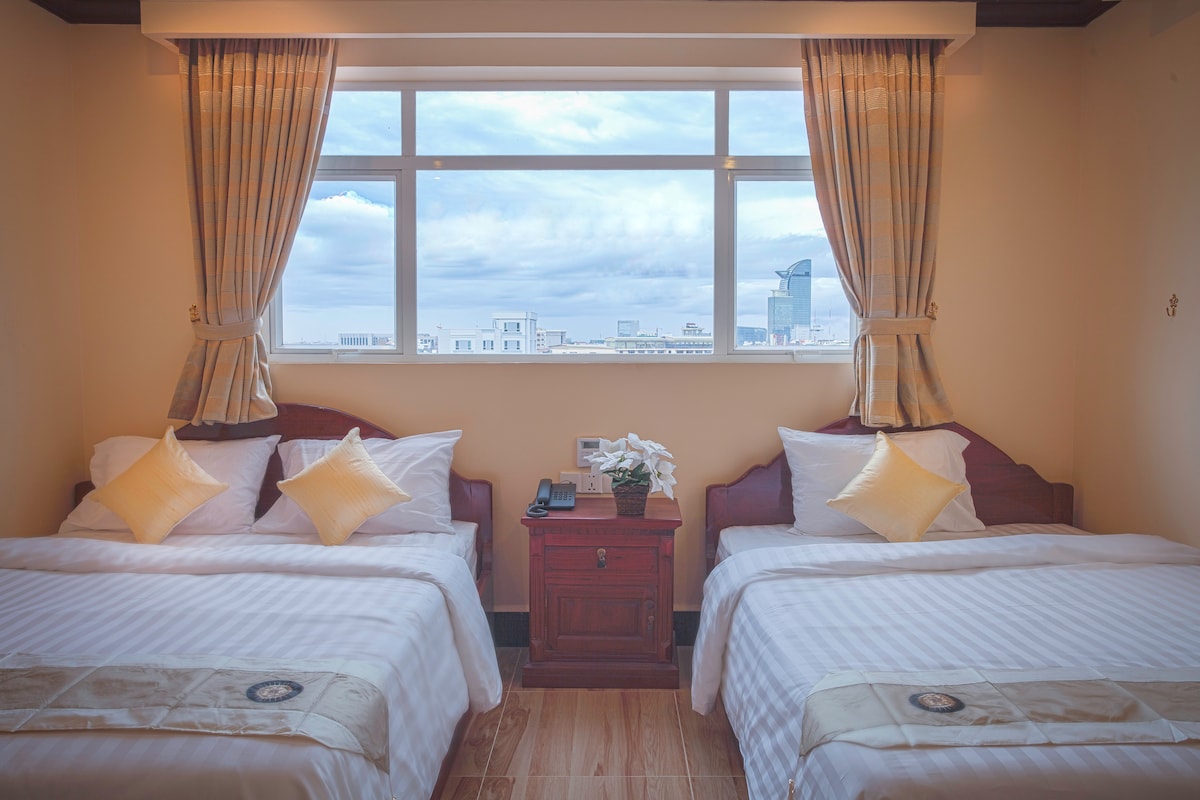 Rommet er et moderne design med et snev av khmer-stil og har alle fasiliteter som sikrer deg det mest behagelige oppholdet. Denne romtypen av to enkeltsenger utstyrt med valg av fasiliteter oppdatert nøkkelkort elektronisk dørlåssystem, i rommet safe, kaffe og te, minibar, telefon pluss en gratis TRÅDLØST nettverkstilkobling, individuelt kontrollert AC, kjøleskap, LED flatskjerm-TV, DVD-spiller.
