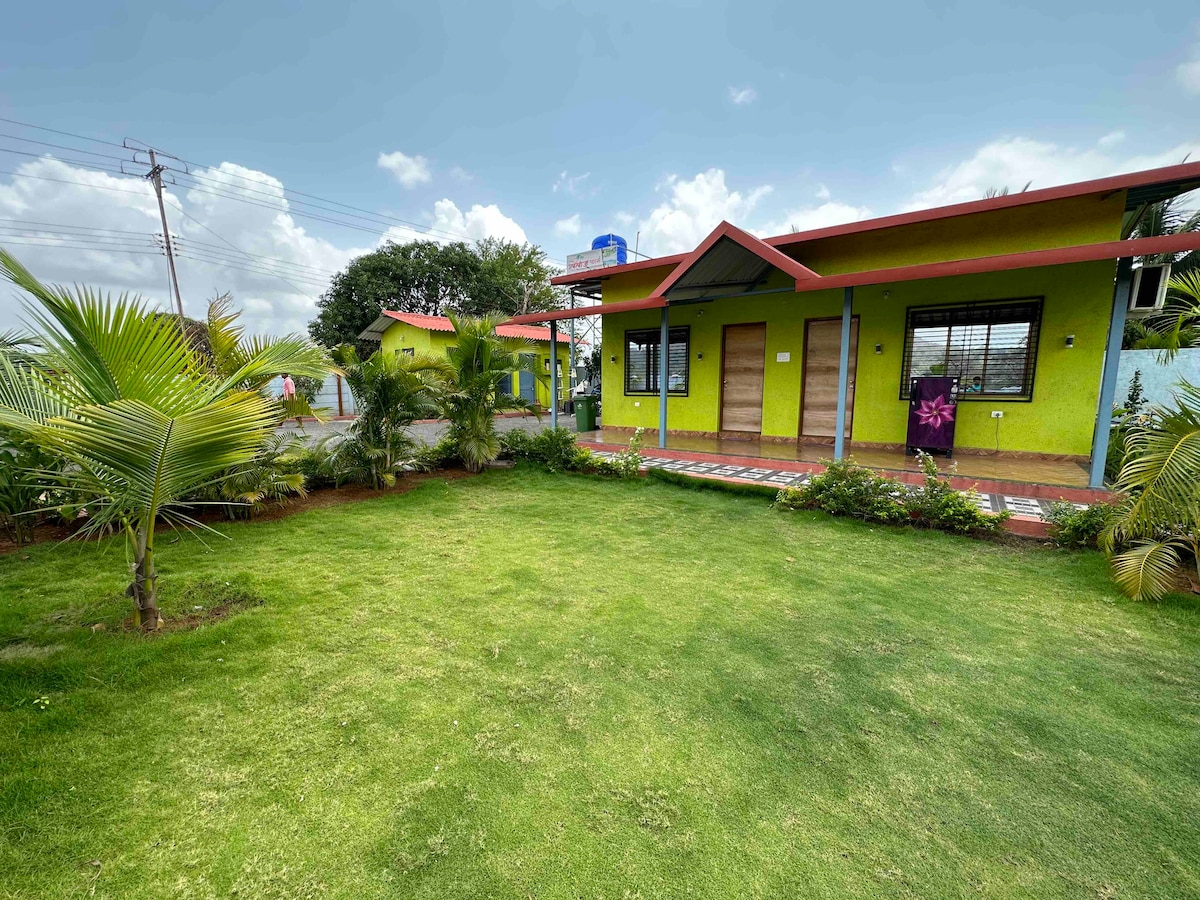 Velkommen til det nyeste tilskuddet til hyttene ved innsjøen på The Farmhouse, Chouk. Våkne til utsikten over innsjøen i denne stilige hytta med eget bad. Vi er kjæledyrvennlige. Flott nettverkstilkobling, trådløst nettverk og nærhet til Pune og Mumbai gjør dette til det perfekte stedet for en helgetur med dine kjære eller et sted for WFH gjennom uken. Vi har en nydelig matservice på eiendommen, tilberedt med kjærlighet av lokale damer og servert på selve hytta, og menyen er på det siste bildet.