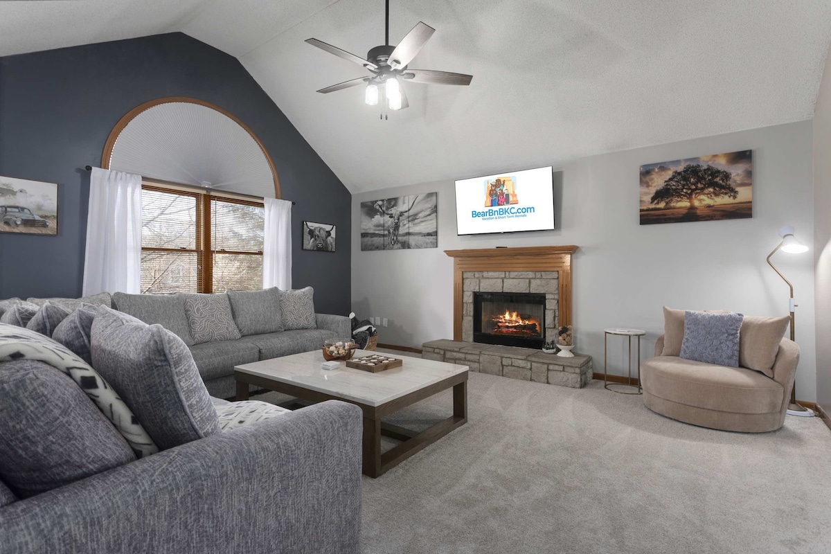 Nærmeste, fine pensjonat til World Cup Kauffman/Royals, Arrowhead/Chiefs GEHA. Og den nye Pickle Ball SW19 på stadionene! Gåavstand til stadionene. Perfekt for fans, konserter, reisende, familier*, kjæledyr, reisende på tvers av landet, 1/2 hektar inngjerdet. 1/2 engelsk mil fra I-70, I-435 og 40 Hwy. Inngjerdet, sikker innkjørsel. Tre store soverom, Chiefs & Royals, skjermet veranda. Fullt møblert kjøkken. Stemningen/komforten av å dra til bestemors hus med moderne bekvemmeligheter. *Kjæledyr med godkjenning og regler.