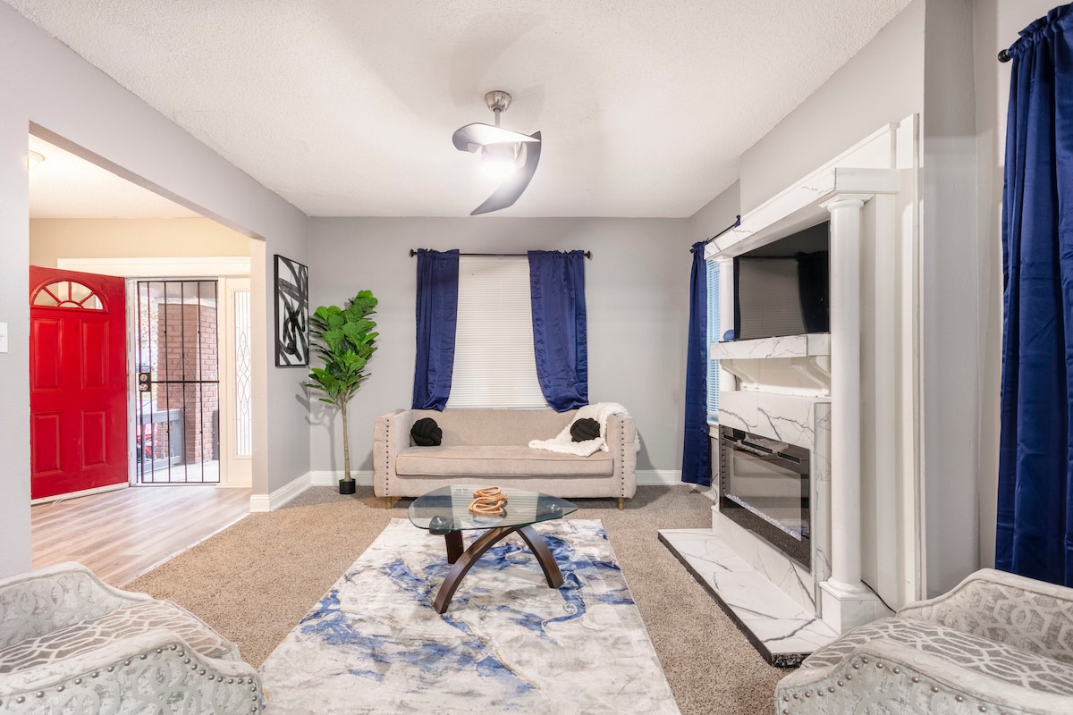Bo komfortabelt i dette koselige hjemmet med to soverom, en king size-seng, en queensize-seng, lekerom for barn, fullt utstyrt kjøkken, rask trådløs nettverkstilkobling og eget skrivebord. Nyt en inngjerdet hage, vaskemaskin/tørketrommel, gratis parkering og enkel innsjekking uten vert. Minutter til Fort Leavenworth, sentrum, butikker og stier, med en enkel kjøretur til arrangementer i Kansas City og FIFA 2026. Perfekt for PCS/TDY-opphold, familiebesøk, reisende sykepleiere og helgeturer. Ikke gå glipp av Bailey's Irish Pub og ørnesafari i parken, alt i gangavstand fra inngangsdøren!