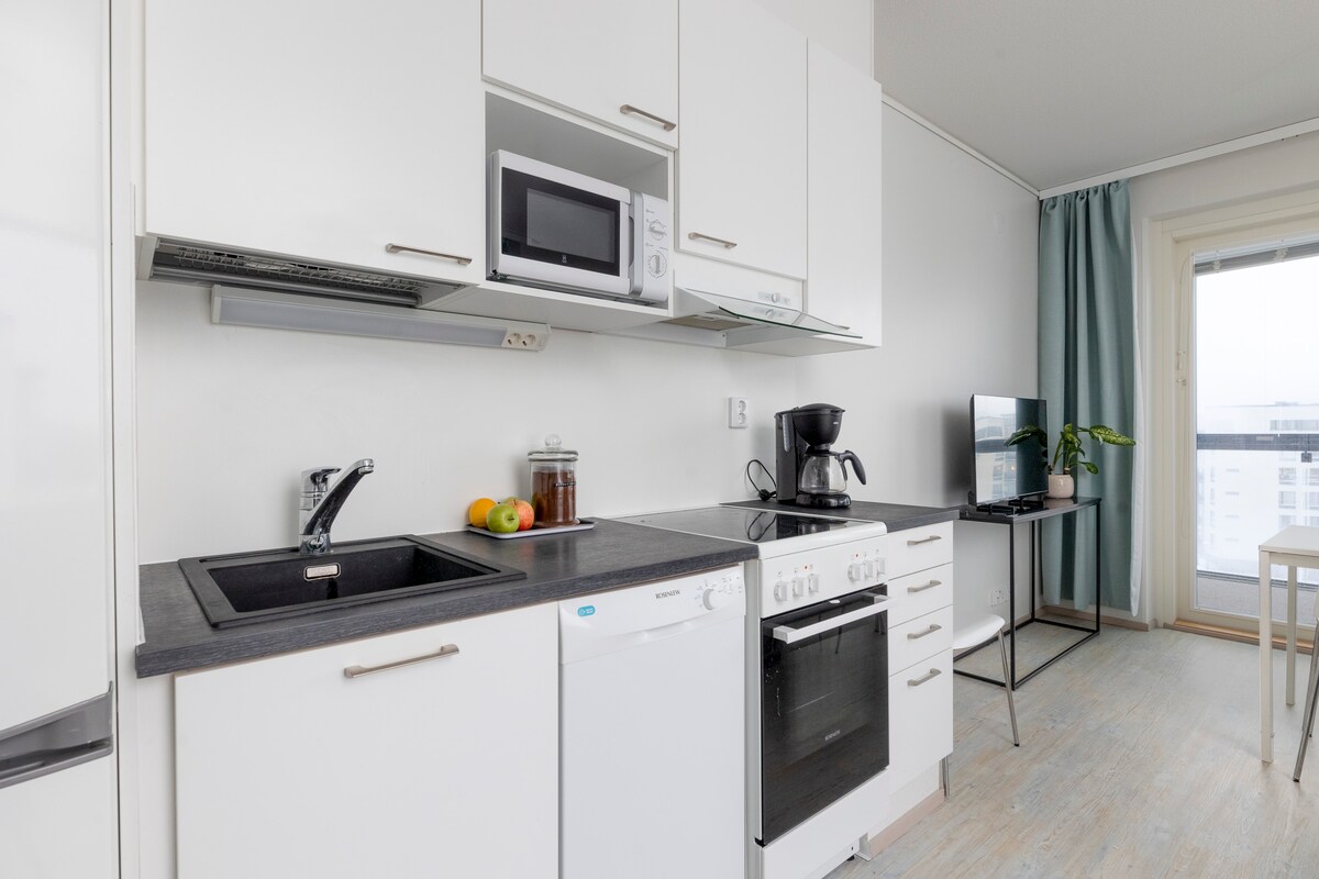 Romslig studioleilighet med balkong og vakker utsikt over innsjøen. Det er en gratis parkeringsplass i nærheten. Det er senger for fem personer: en dobbeltseng (160 cm), en sovesofa (160 cm) og en sammenleggbar ekstra seng (80 cm). Oppholdet inkluderer sengetøy og håndklær. Leiligheten har gratis trådløst nettverk (10 mbit). Det er en heis i huset. >> Hämeenlinna sentrum 1 km >> Verkatehdas, teater- og Suisto-klubben 200 meter >> Aulanko 4 km >> Jernbanestasjon 800 meter >> Dagligvarebutikk 300 meter >> Ladestasjon for elbil 150 meter.