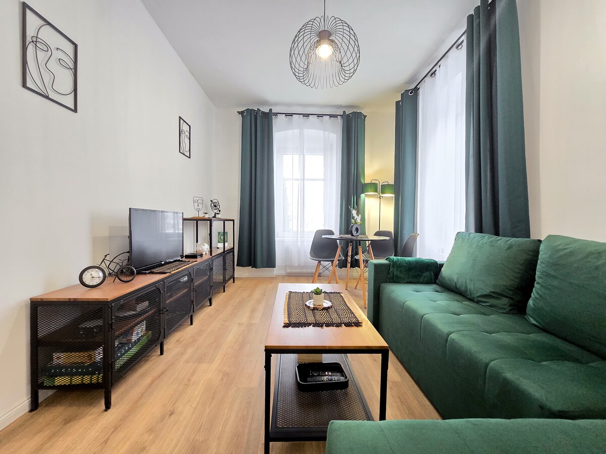Et solfylt studio som ligger ved inngangen til Spa Park, i nærheten av Term Cieplice. Postkontor, butikker, minibank og hovedpromenaden ligger rett rundt hjørnet. Denne romslige og lyse leiligheten har vaskemaskin/tørketrommel, kaffehjørne, kjøkkenkrok og gratis parkering for gjestene. Jeg er her for å hjelpe til med EN, GE, PL __________ Sunny studio, plassert ved inngangen til parken. Postkontoret, butikkene, minibankene og det viktigste fotgjengerområdet er rett rundt hjørnet. EN, GE, PL