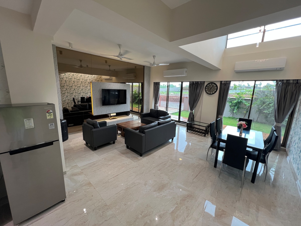 - Swimming Pool 32x8x4 - Pool/Snooker Table - Outdoor Fire-pit - 55” smart TV with Netflix - HiFi Home Theatre 5.0, Marantz amp and Taga Speakers - 8” Ortho mattresses and quality furniture - Fully Air-conditioned - 5 ACs - Bathtub in master bathroom - Green Lawns with fruit trees - Water Feature in garden - Bluetooth Outdoor Speakers - Fully equipped kitchen - Barbecue - Caretaker and Housekeeping services - Carrom, Badminton & Board Games - Inverter Power Backup - Peaceful & private