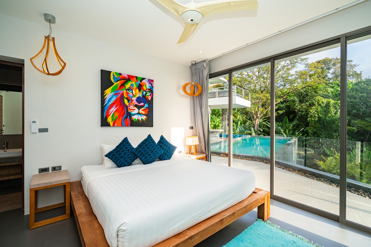 Stilig leilighet med bassengutsikt, ett soverom, 15 minutter til Patong