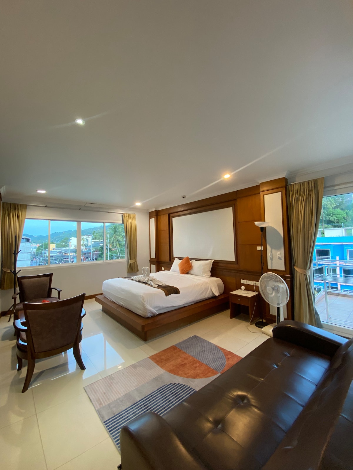Nyt oppholdet ditt i vårt superior-stilfulle rom med privat balkong, designet for komfort og avslapning. Rommet har moderne innredning, en koselig seng, klimaanlegg, smart-TV, kjøleskap og et rent privat bad. Beliggende bare en kort spasertur fra Patong Beach, Jungceylon Mall og Bangla Road, har du enkel tilgang til de beste stedene for spisesteder, shopping og natteliv — men hotellet vårt er rolig og fredelig, perfekt for en god natts søvn.