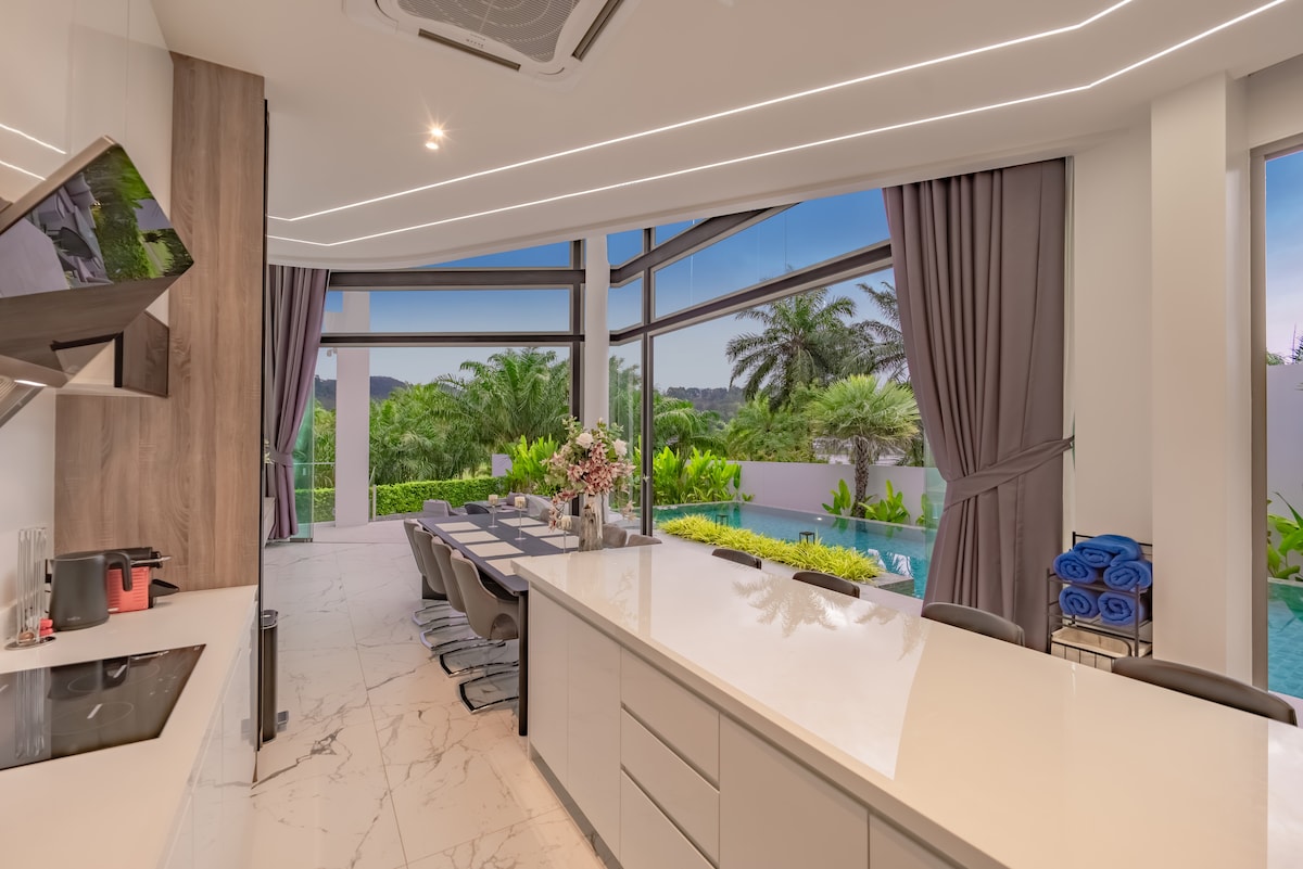 Velkommen til Villa Priva, et eksklusivt feriested som ligger i den prestisjetunge golfklubben Loch Palm, bare 15 minutter fra Patong. Se majestetiske havørner sveve over området mens denne elegante villaen med seks soverom kombinerer luksuriøst boende med naturlig ro, med et fantastisk 12-meters basseng, feiende utsikt mot golfbanen og sofistikert interiør. Enten du praktiserer yoga, underholder eller bare slapper av, tilbyr denne villaen en uovertruffen setting for å feire livets øyeblikk.