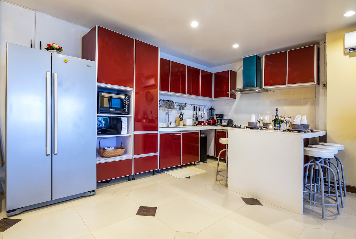 Dette 5-stjerners luksusprosjektet med 24 timers sikkerhet gir "tilgangskort" for å sikre at oppholdet ditt er trygt og privat. Tilgjengelig til bygning, takterrasse, svømmebasseng, treningsstudio og heiser. og gi dem nedenfor : - 2 elegante lobbyer - Stort svømmebasseng i første etasje og solterrasse - Takterrasse med uendelig basseng og solterrasse - Treningssenter - Sauna stream room - Vaskerom - Parkeringsplass - 24 timers sikkerhet med CCTV-er
