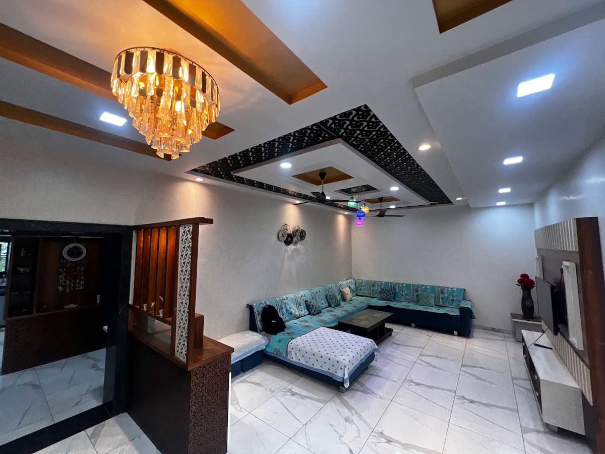 Welcome to your getaway! Fully furnished bungalow. The home features 4 well-designed bedrooms and 4 modern washrooms, ensuring privacy for everyone. With 3 double beds and extra mattresses,cozy interiors, and thoughtful furnishings. Enjoy a peaceful garden space to relax and unwind, along with dedicated parking (ev charging available)for a hassle-free stay. The bungalow also includes essential amenities like a refrigerator and kitchen appliances. ( ₹400 Extra charge for EV vehicle charging)