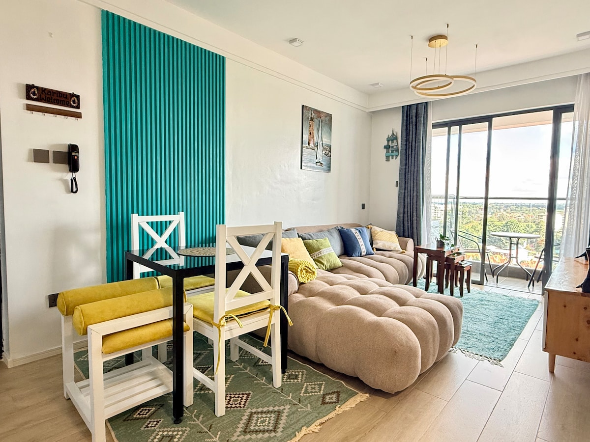 Opplev Swahili-inspirert sjarm fra 14. etasje i denne moderne 1BR på Leo Residence, Lavington. Nyt fantastisk utsikt over Ngong-skogen og Nairobis silhuett. Leiligheten blander kulturell eleganse med moderne komfort, og inkluderer tilgang til et treningsstudio, basseng og sikker parkering. Beliggende i en rolig og sikker inngjerdet eiendom, som er praktisk plassert til Nairobis beste spisesteder, shopping og underholdning. Leiligheten er ideell for både fjernarbeidere, forretningsreisende og fritidsgjester.
