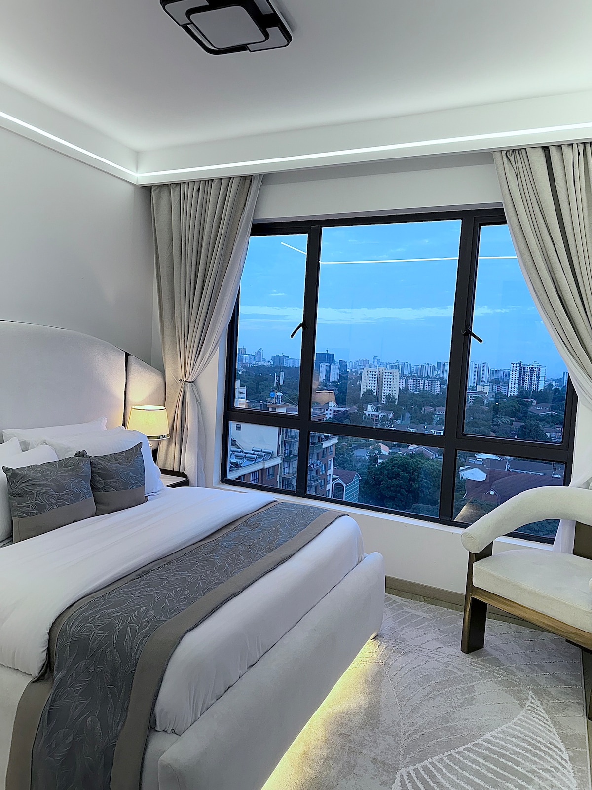 Velkommen til SkyNest, som ligger i 15. etasje i hjertet av Westlands, Nairobi. Denne stilige leiligheten tilbyr moderne luksus og fantastisk panoramautsikt over byen. Opplev Nairobi på sitt beste med kjøpesentre, butikker, konferansesentre og pulserende uteliv bare en spasertur unna. Etter en dag med eventyr kan du gå tilbake til din urbane oase med toppmoderne fasiliteter. Slapp av på din private balkong og nyt byens lys. SkyNest er opplevelsen din – der luksus møter beliggenhet!
