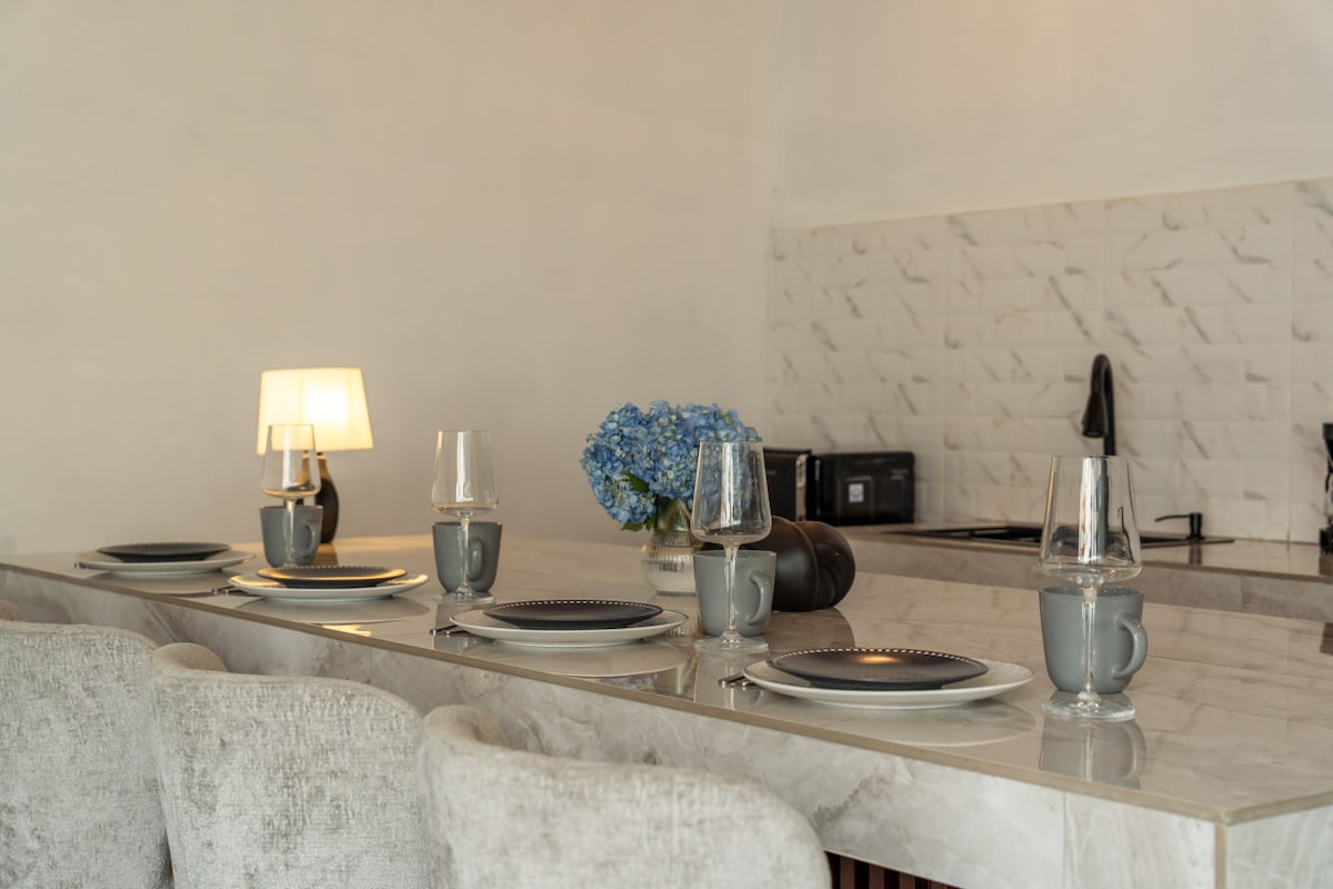 Villa med tre rom med eget bad – perfekt for familier eller grupper som verdsetter design og privatliv. Villaen er inspirert av et rekkehus i New York City, og den blander slående arkitektur med glassblokker med luftig interiør og rikelig med naturlig lys. Slapp av i det private bassenget med jacuzzi, sol deg på terrassen med strandutsikt og infrasauna, eller nyt koselige filmkvelder. Med et pulserende nabolag rett utenfor døren og alt du trenger inne, er denne villaen den ideelle rammen for et virkelig minneverdig opphold.