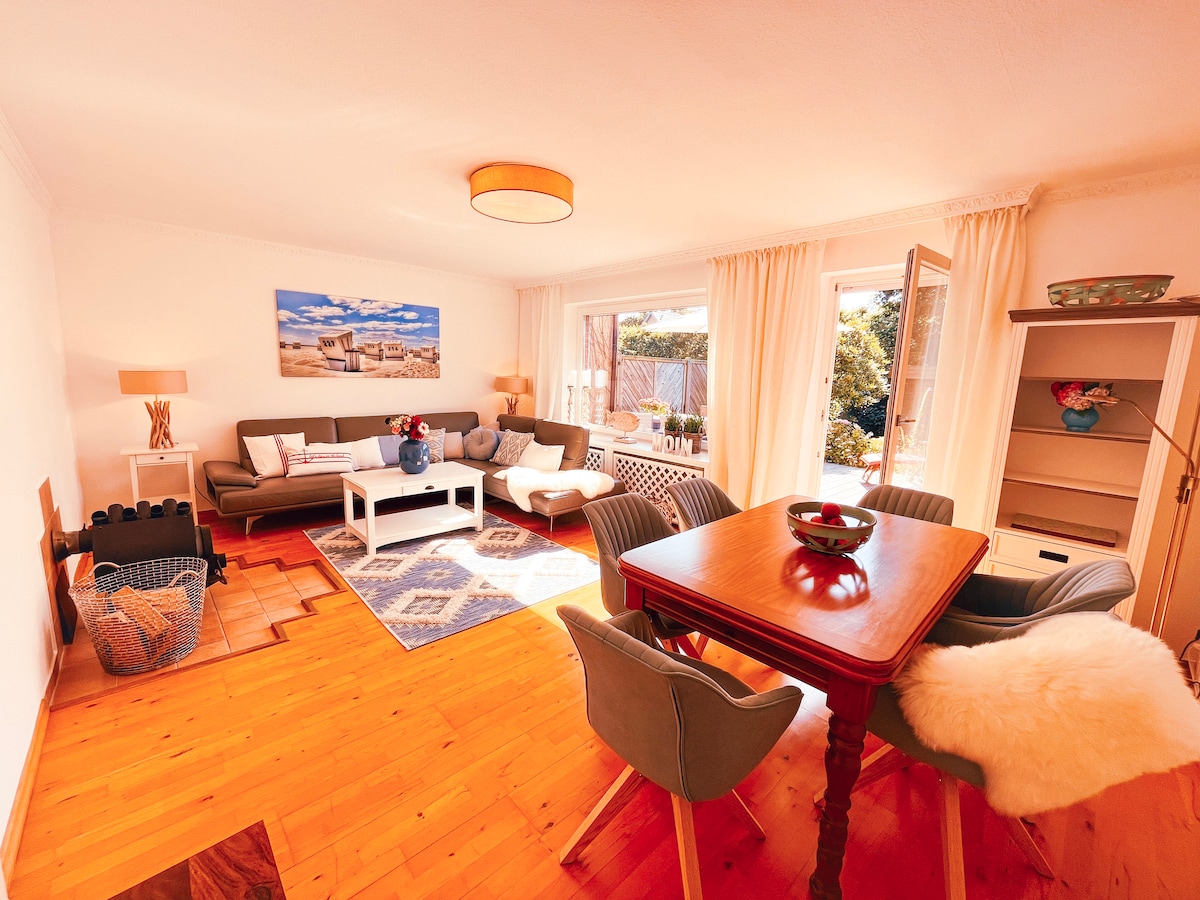 Lys, rustikk stil, hvit møblert to-roms leilighet i andre etasje med ekte treparkett, fullt utstyrt kjøkken, bad og soverom. I hjertet av Wenningstedt i umiddelbar nærhet til landsbydammen, mange butikker (bakerier nede i huset) og flotte restauranter. Gosch og stranden ligger innenfor gangavstand! (5-10 minutter). Fra balkongen med strandstol kan du se Kampener fyr. Busstopp rett utenfor døren. Innsjekking er fra kl. 16.00.