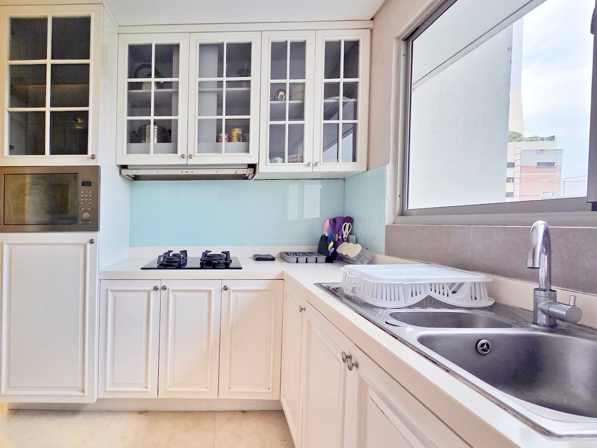 Helt ny, renovert leilighet. Bo med hele familien på vårt hjemmekoselige, romslige sted, med to soverom og én sovesofa i stuen, passer til seks gjester totalt. Midt i det største kjøpesenteret i Indonesia (MOI) er det massevis av restauranter, butikker og morsomme aktiviteter for deg og hele familien.