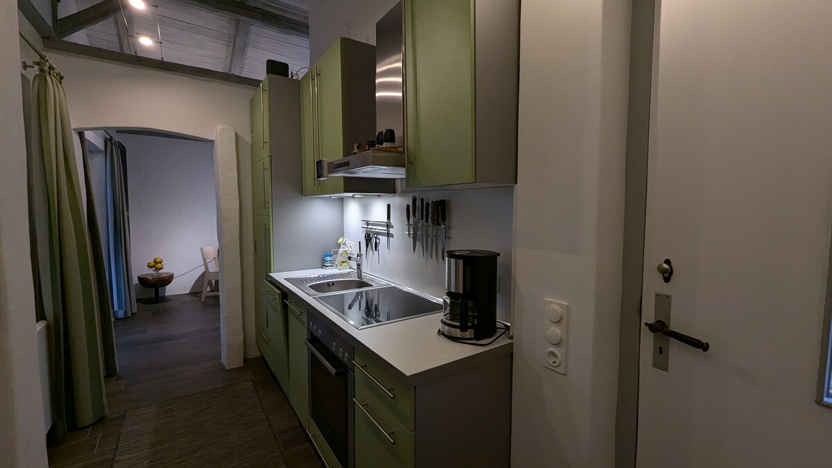 Modernisiertes offenes und luftiges Appartement mit herrlichem Ausblick über die Kieler Bucht, direkt am Yachthafen Kiel Schilksee gelegen. Bei dem „Schlafzimmer“ handelt es sich um einen halbhohen Liegebereich (keine Stehhöhe), zu dem man über eine kleine Holzleiter/Treppe gelangt. Auch aus dem Bett hat man auch einen tollen Blick aufs Wasser. Hier ist außerdem eine Fernseh-Ecke eingerichtet. 1 PKW-Abstellplatz auf einem Parkplatz mit Schranke gesichert, steht Euch zur Verfügung.