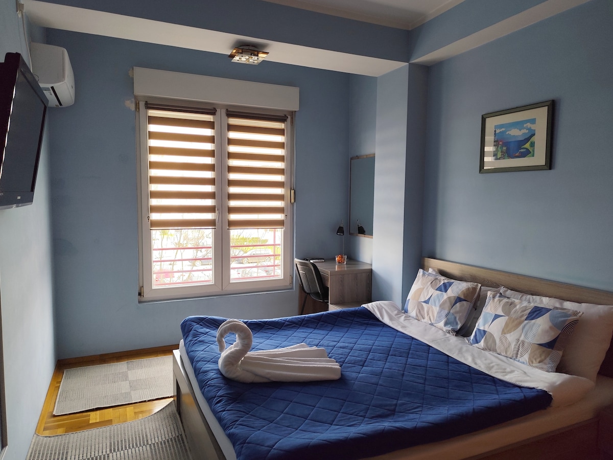 Denne moderne, koselige, nyoppussede leiligheten ligger i det vakreste området å bo i Podgorica, og tilbyr deg mer enn du trenger for å få en uforglemmelig opplevelse i denne byen. Bare ti minutters gange fra sentrum. Den er ideell for korte eller lange opphold, enten det er forretnings- eller fritidsformål. Den er perfekt for deg som ønsker å tilbringe tid i et rolig nabolag, men fortsatt være i nærheten av alle viktige steder i Podgorica.