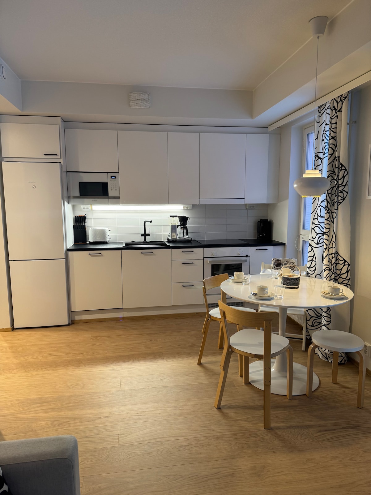 Et fantastisk studio med en utmerket beliggenhet! Det lyse og romslige studioet ligger rett ved siden av Ainola-parken. En kort spasertur til sentrum. Leiligheten har utstyr av høy kvalitet: f.eks. induksjonskomfyr, integrert oppvaskmaskin, integrert stekeovn, tørketrommel. Leiligheten har stilig interiør og vakre servise. Det er 160 cm dobbeltseng og en tredje seng som en luftmadrass. En stor glasert balkong med sitteplasser. 43" smart TV (f.eks. Netflix), høyhastighets internett (200/200).