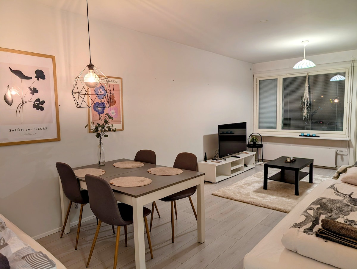 Velkommen til en romslig og lys leilighet i rolig leilighetsbygning. Vinduene gir en romslig utsikt over elven Tornion og broene. Fra inngangsdøren kan du komme deg direkte til vannkanten rundt øya. Den nærmeste restauranten ligger i neste kvartal, og på ti minutter kan du gå til Raja kjøpesenter. Det er ett soverom, men den romslige stuen i leiligheten rommer komfortabelt 4 personer. Det er også en reiseseng som små barn kan bruke.