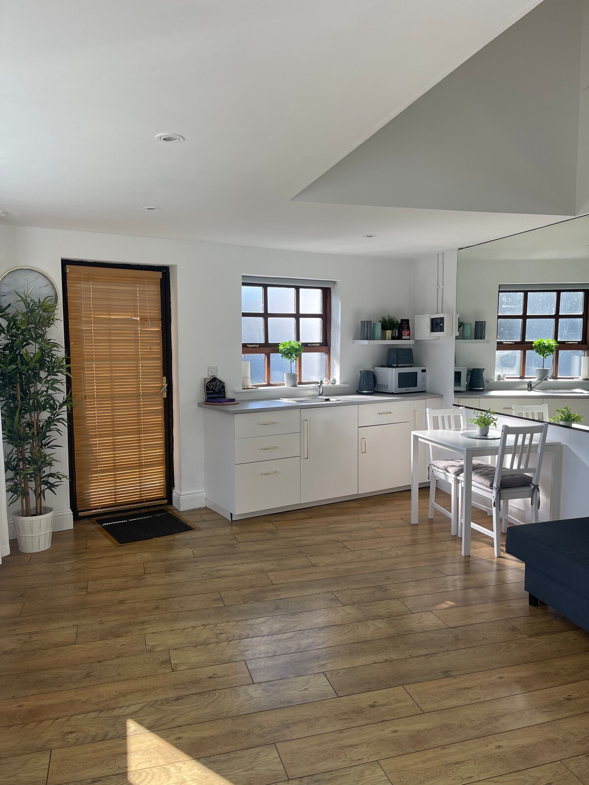 Ligger på landet, er hytta på toppen av en blindvei. En bil er et must da lokalfasilitetene ligger en kjøretur unna. Kerry flyplass ligger 9 minutter unna. Glenageenty Walkway, Ballyseedy Wood, Crag Cave i nærheten. Tralee Dingle Killarney ligger innenfor rekkevidde. 6 sengeplasser hytta er i åpen planløsning. Ovenpå har to dobbeltsenger med dusj/toalett. Nedenunder kjøkken/spisestue og stue. Sofaen er en sovesofa og har plass til to personer. Personvern er kompromittert, derfor er det mest egnet for en familie.