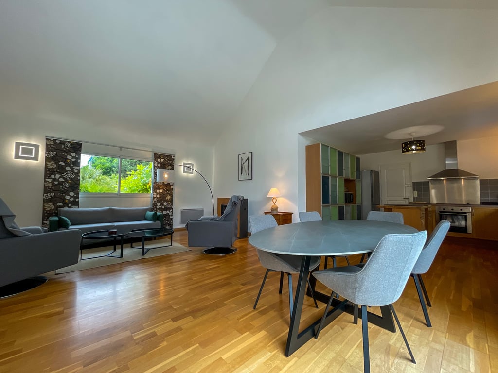 leilighet(kun) sentrum (2 til 8 personer), 120 m2, bad: 2(dusj og badekar); 2 fullt utstyrt kjøkken , 2 flatskjermer,kaffetrakter og dolce gusto. 3 km fra havet. 140 cm flatskjerm-TV SENGETØY OG HÅNDKLÆR ER IKKE INKLUDERT Rengjøringsgebyret er inkludert i den totale prisen for oppholdet. Fire soverom: 1: 1 queensize-seng + paraplyseng 2: 1 seng 140 + 1 seng 90 3: 1 seng på 140 cm 4: 1 seng 120 1 sammenleggbar seng 90 barnestol Offentlig parkering foran leiligheten.