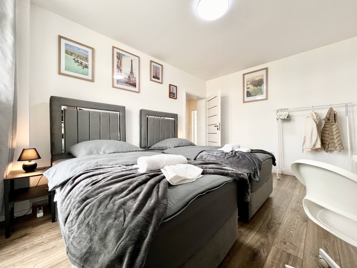 Moderne leilighet, nær flyplassen / messe / arena